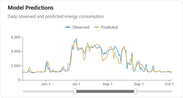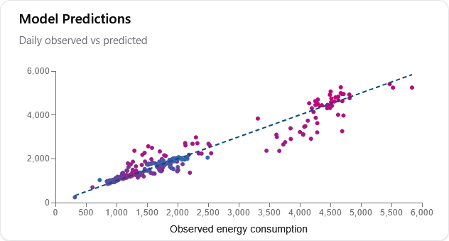 Although Meval does not adopt a pure prediction-based approach, predictive accuracy still matters. A model that can closely track the energy consumption during the baseline period will not necessarily be able to accurately estimate energy savings, but a model that cannot, will definitely fail to provide trustworthy energy savings estimations.